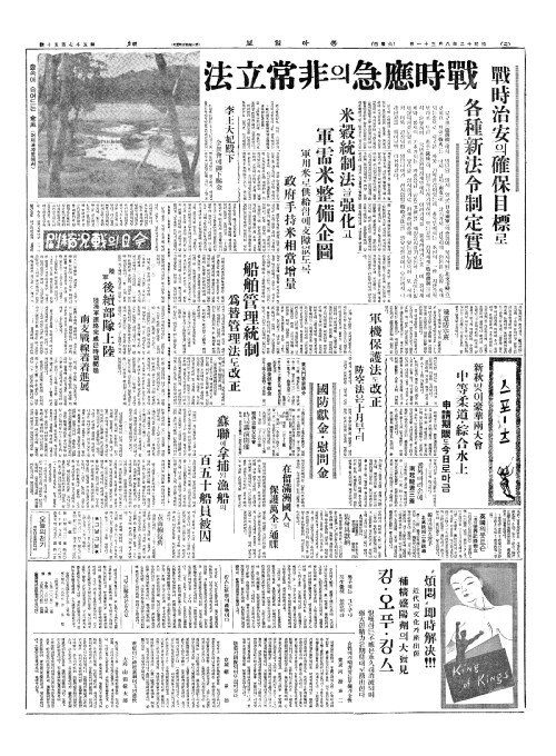- 戰時應急(전시응급)의非常立法(비상입법)