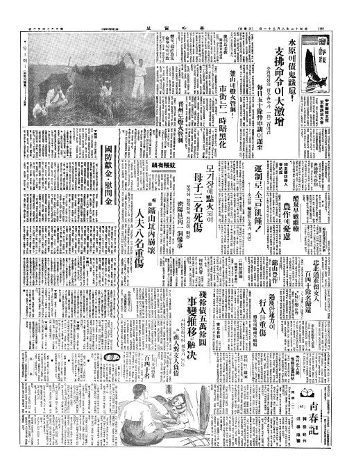 - 蚊帳有禍(문장유화) 모기장에點火(점화)되여 母子三名死傷(모자삼명사상)
