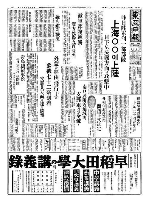 - 昨日陸軍(작일륙군)의一部部隊(일부부대) 上海(상해)○○에上陸(상륙)