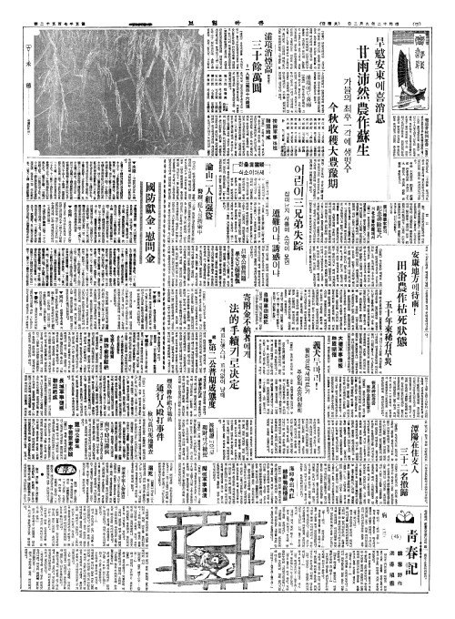 - 安康地方(안강지방)에待雨(대우)! 田畓農作枯死狀態(전답농작고사상태)