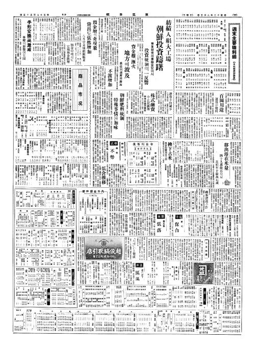 - 紡績人絹大工場(방적인견대공장) 朝鮮投資躊躇(조선투자주저)