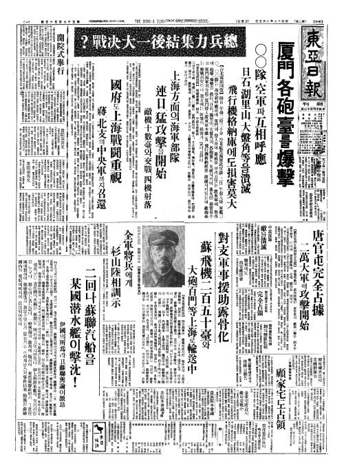 - 上海戰(상해전)에注力(주력) 支那軍十五萬(지나군십오만)