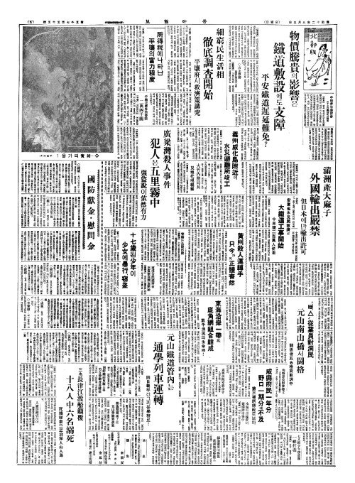 - 物價騰貴(물가등귀)의影響(영향)은 鐵道敷設(철도부설)에도支障(지장)