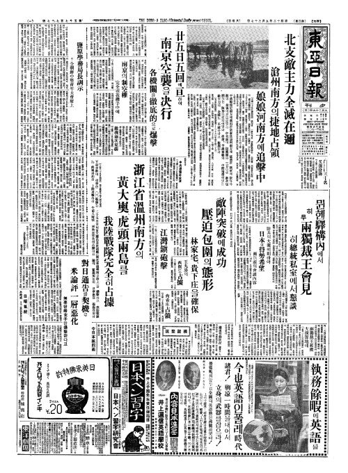 - 廿五日五回(입오일오회)에亘(긍)하야 南京空襲(남경공습)을决行(결행)