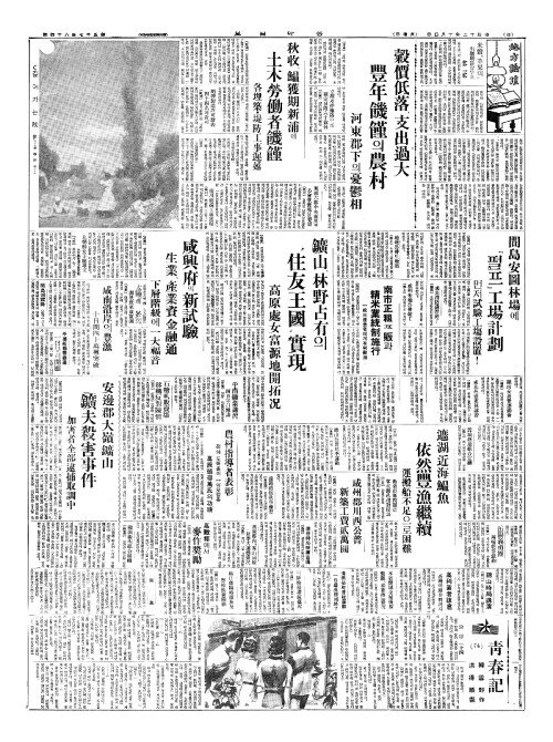 - 秋收(추수)、鰮獲期新浦(온획기신포)에 土木勞働者饑饉(토목노동자기근)