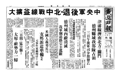 - 津浦線敵主力全滅(진포선적주역전멸) 德州陷落戰果多大(덕주함낙전과다대)