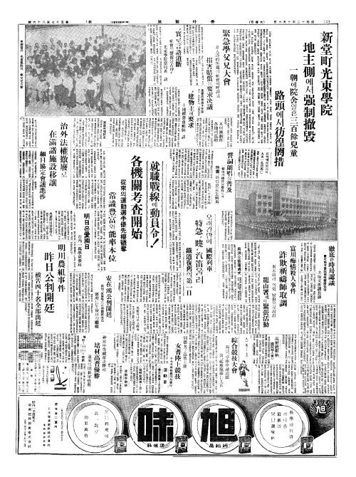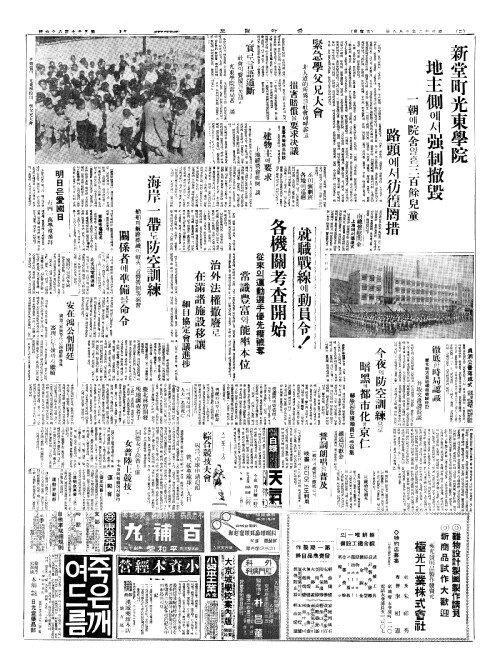 - 新堂町光東學院(신당정광동학원) 地主側(지주측)에서强制撤毁(강제철훼)