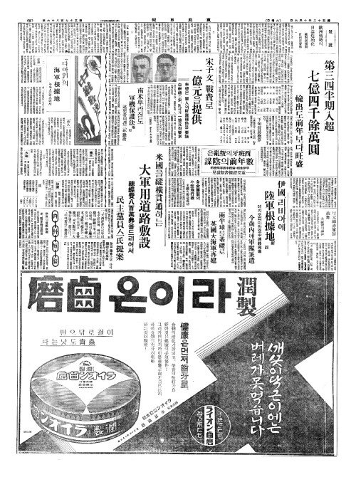 - 宋子文(송자문)、戰費(전비)로 一億元(일억원)을提供(제공)