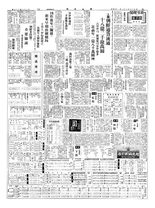 - 上期朝鮮通貨流通(상기조선통화류통) 十八億二千餘萬圓(십팔억이천여만원)