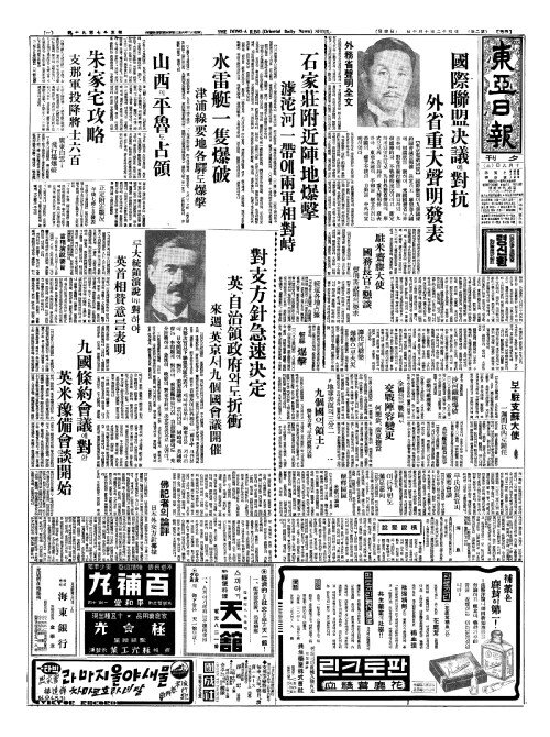 - 對支方針急速决定(대지방침급속결정) 英自治領政府(영자치영정부)와도折衝(절충) 來週(내주)、英京(영경)서九個國會議開催(구개국회의개최)