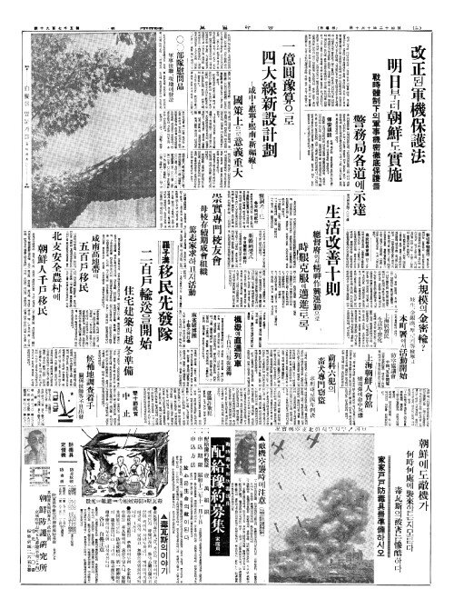 - 改正(개정)된軍機保護法(군기보호법) 明日(명일)부터朝鮮(조선)도實施(실시)