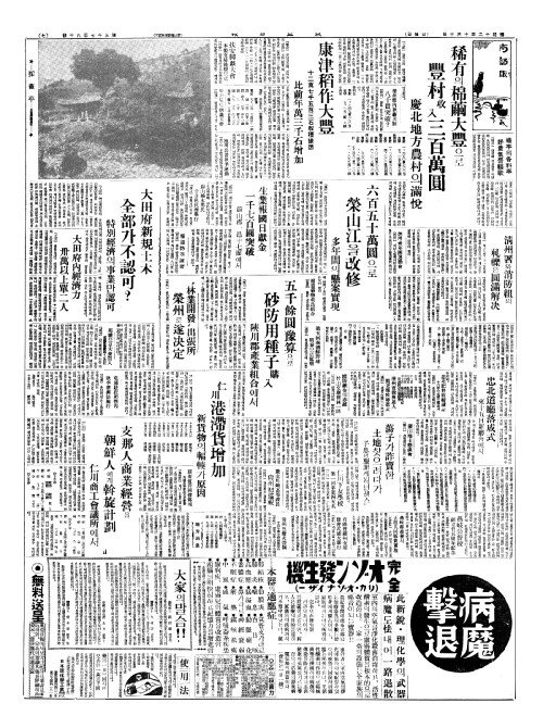 - 米棉收穫豫想(미면수확예상) 二六年來大豐作(이륙년래대풍작)