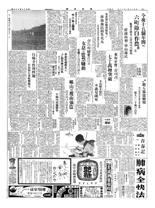 - 淸州殺人强盜續報(청주살인강도속보) 악착한犯行(범항)은目不忍見狀態(목부인현상태) 犯人(범인)은二十歲(이십세)의靑年(청년)