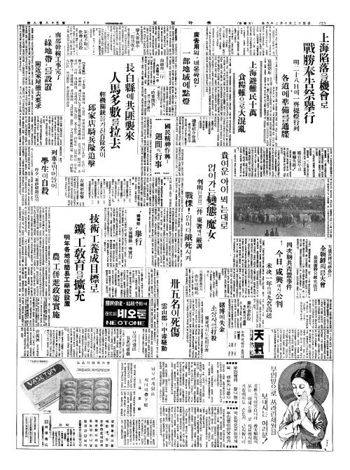 - 上海避難民十萬(상해피난민십만) 食糧難(식량난)으로大混亂(대혼난)