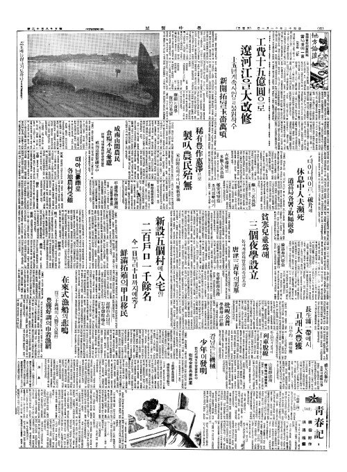 - 工費十五億圓(공비십오억원)으로 遼河江(요하강)을大改修(대개수)