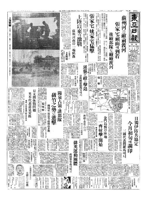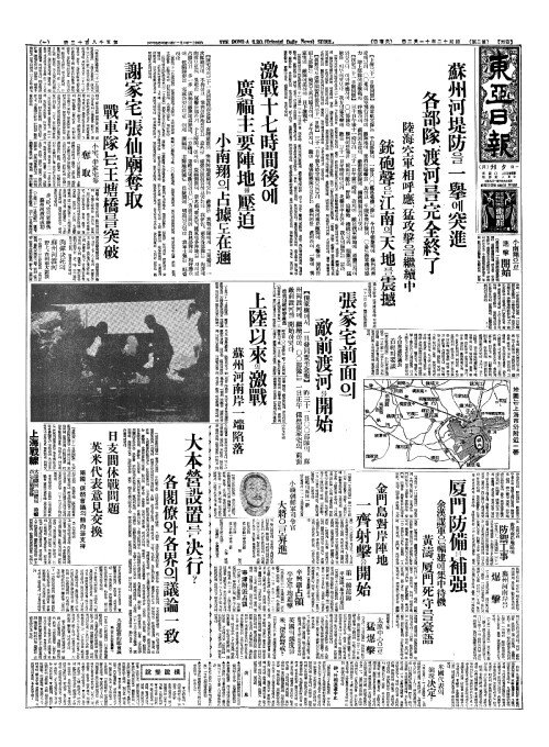 - 蘇州河堤防(소주하제방)을一擧(일거)에突進(돌진) 各部隊(각부대)、渡河(도하)를完全終了(완전종료)