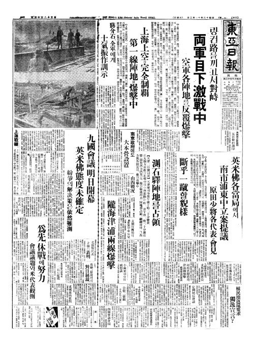 - 上海敗戰(상해패전)으로 抗日(항일)의各團體(각단체)가蹶起(궐기)