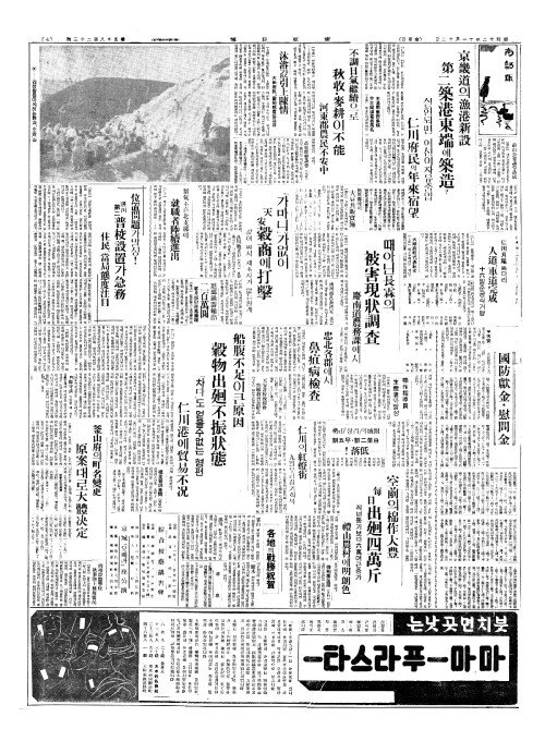 - 不調日氣繼續(부조일기계속)으로 秋收(추수)·麥耕(맥경)이不能(부능) 河東郡農民不安中(하동군농민부안중)