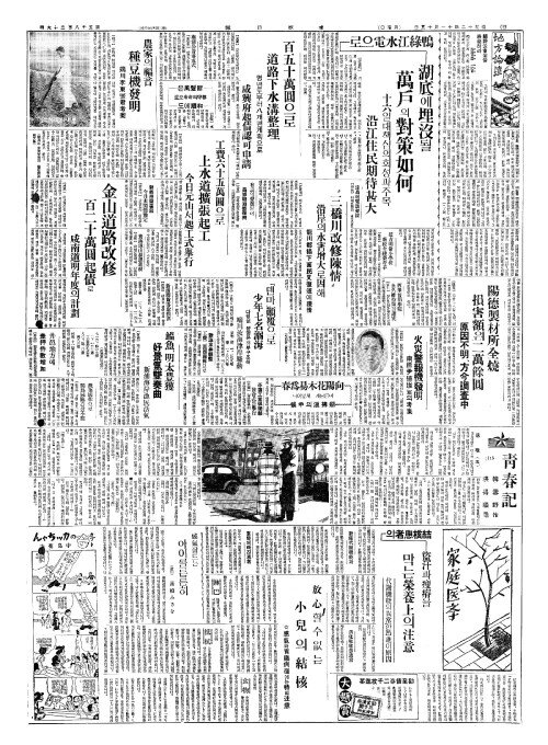 - 工費六十五萬圓(공비륙십오만원)으로 上水道擴張起工(상수도확장기공)