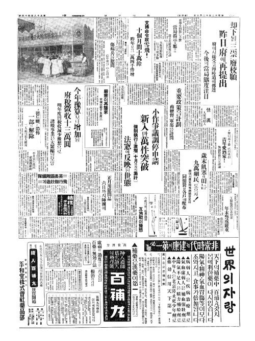 - 全朝鮮(전조선)에 추위再襲(재습) 咸北(함배)엔積雪三尺(적설삼척)!