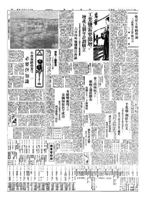 - 工業鹽需要激增(공업염수요격증)으로 增產五個年計劃樹立(증산오개년계획수입)