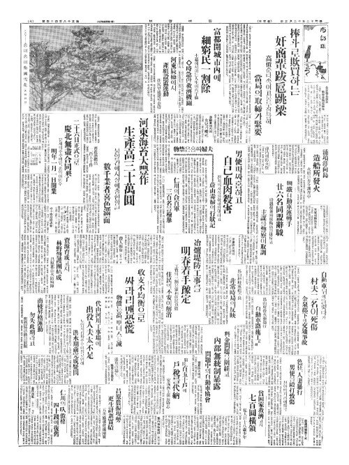 - 河東海苔大豐作(하동해태대풍작) 生產高三十萬圓(생산고삼십만원)