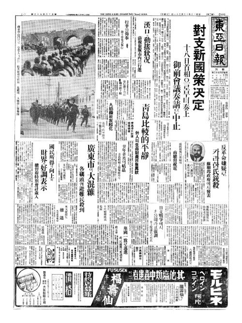 - 香港駐在鈴木武官(향항주재령목무관) 暴民(폭민)에게 被襲(피습)되어 負傷(부상)