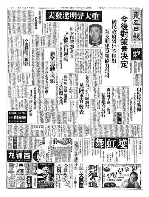 - 近衛首相參內(근위수상참내) 聲明文案(성명문안)을上奏(상주)