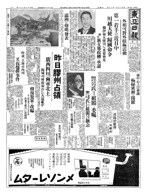 - 昨日膠州占領(작일교주점영) 廣西四川兩軍北上(광서사천량군북상)?