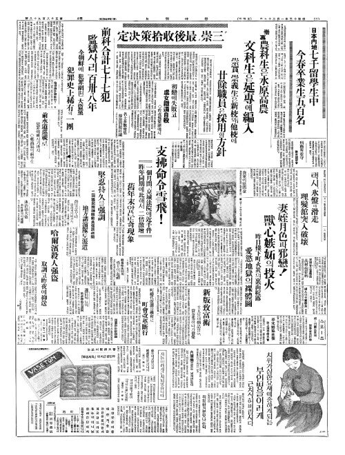 - 日本內地七千留學生中(일본내지칠천유학생중) 今春卒業生五百名(금춘졸업생오백명)