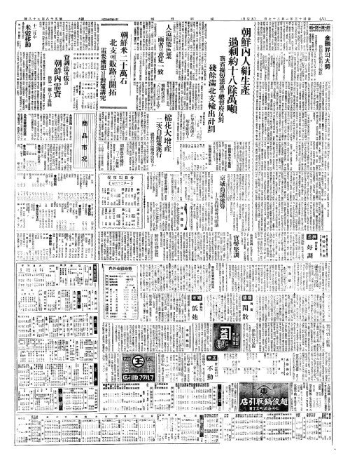 - 朝鮮內人絹生產(조선내인견생산) 過剩約十八餘萬噸(과잉약십팔여만톤)