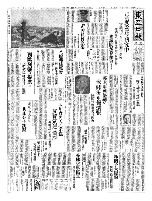- 西歐列强(서구열강)의提携(제휴)를 英元海峽(영원해협) 植民總督(식민총독)크氏强調(씨강조)