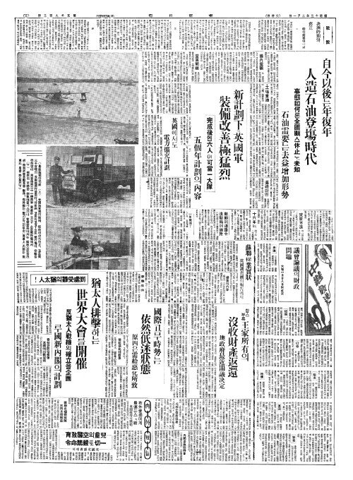 - 自今以後(자금이후)는年復年(년복년) 人造石油登塲時代(인조석유등장시대)