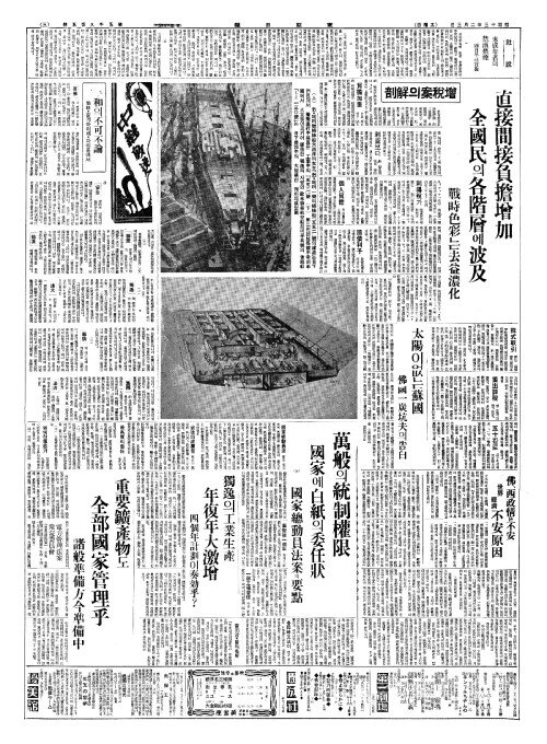 - 國家總動員法案(국가총동원법안) 來週議會提出(내주의회제출)