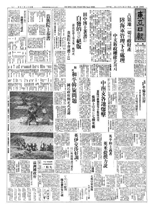 - "新政權承認態度(신정권승인태탁)는 一切廻避(일절회피)토록訓令(훈령)을發(발)햇다" 크란본英外務次官答辯(영외무차관답변)