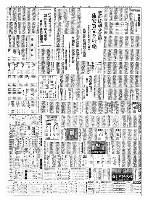 - 肥料統制令實施(비료통제령실시)로 硫安買完全杜絕(유안매완전두절)