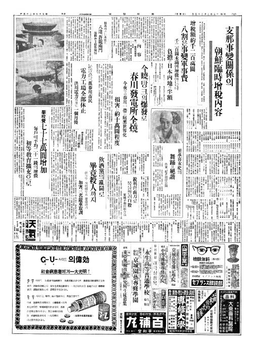 - 支那事變關係(지나사변관계)의 朝鮮臨時增稅內容(조선임시증세내용)