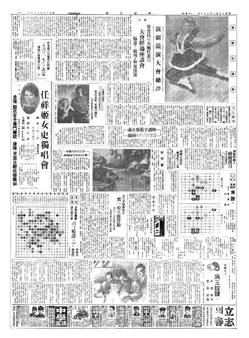- 演劇竸演大會總評(연극경연대회총평) 審查員(심사원)과各團代表(각단대표)의 大會經過座談會(대회경과좌담회) 隔意(격의)없는批判(비판)에和氣靄靄(화기애애)