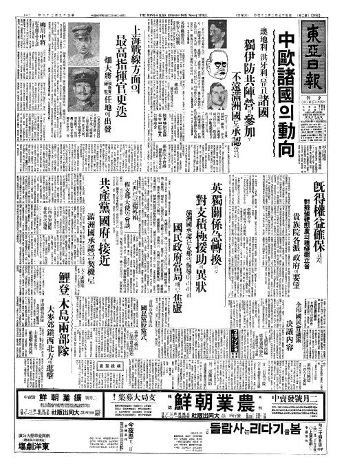 - 英獨關係急轉換(영독관계급전환)으로 對支積極援助(대지적극원조)에異狀(이장) 滿洲國承認(만주국승인)은支那(지나)의侮辱(모욕)이라하고 國民政府當局(국민정부당국)매우焦慮(초려)