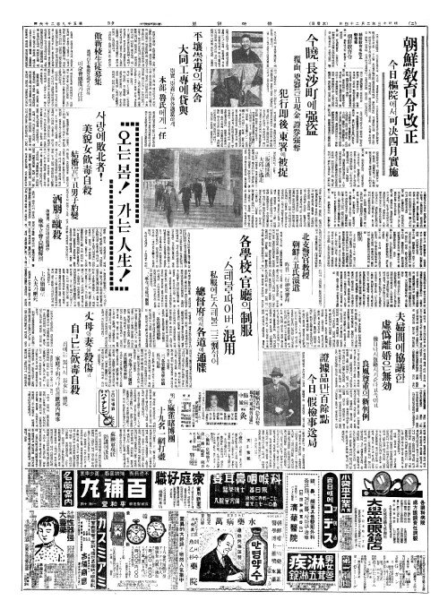 - 朝鮮敎育令改正(조선교육령개정) 今日樞院(금일추원)에서可决四月實施(가결사월실시)