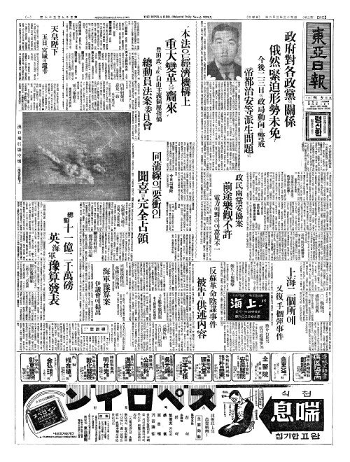 - 政府對各政黨(정부대각정당)의關係(관계) 俄然(아연)、緊迫形勢未免(긴박형세미면)?