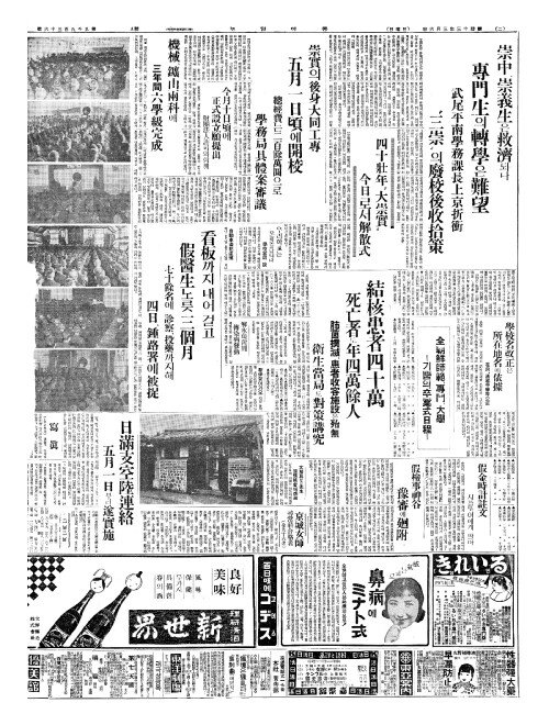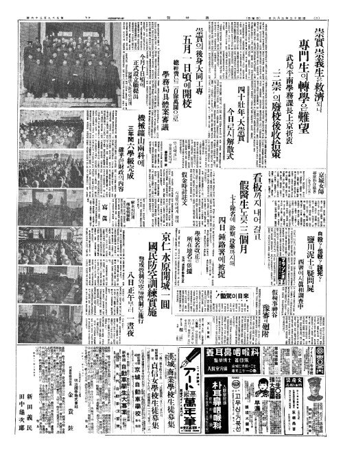 - 崇實(숭실)의後身大同工專(후신대동공전) 五月一日頃(오월일일경)에開校(개교)