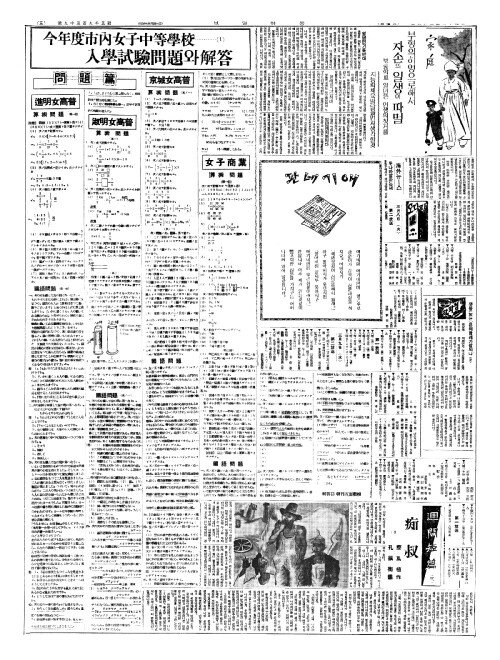 - 今年度市內女子中等學校(금년탁시내여자중등학교)……… (2) 入學試驗問題(입학시험문제)와解答(해답)