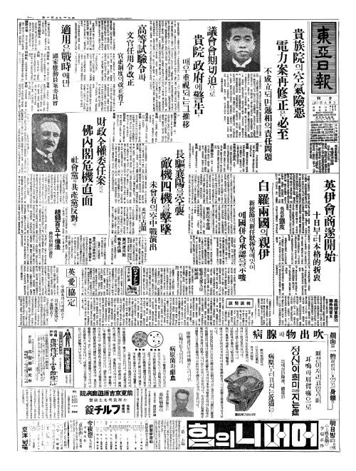 - 貴族院(귀족원)의空氣險惡(공기험악) 電力案再修正(전력안재수정)은必至(필지) 不成立(부성립)되면遞相(체상)의責任問題(책임문제)