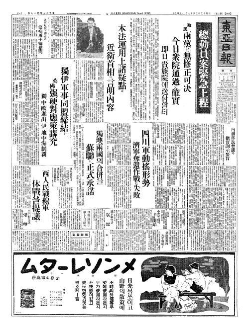 - 總動員法案(총동원법안) 貴院(귀원)도通過(통과)될듯