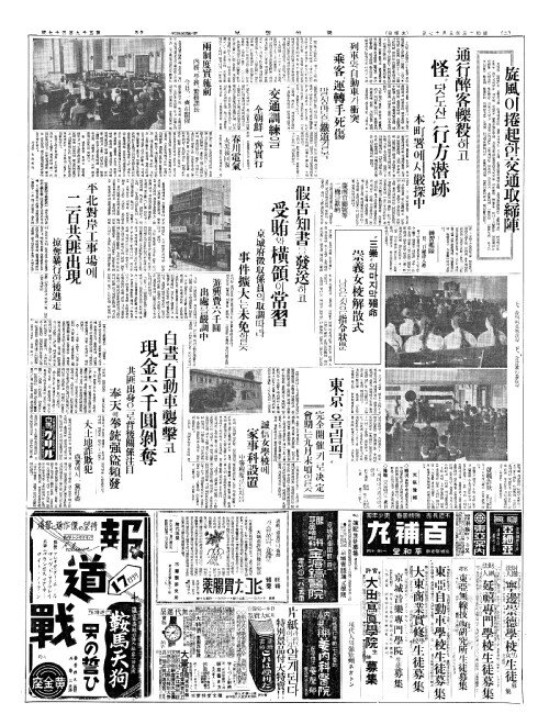 - 白晝(백주)、自動車襲擊(자동차습격)코 現金六千圓剝奪(현김륙천원박탈)