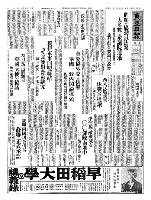 - 英妥協外交(영타협외교)를排擊(배격) 擧國一致內閣論擡頭(거국일치내각론대두)