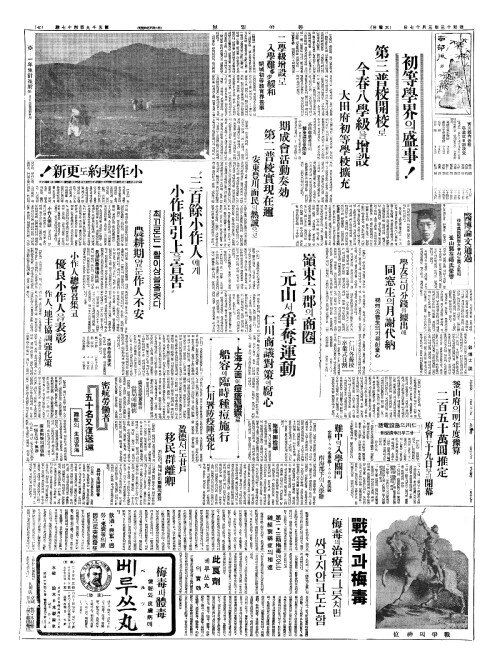 - 小作契約(소작계약)도更新(경신)! "三百餘小作人(삼백여소작인)에게 小作料引上(소작요인상)을 宣吿(선고)"