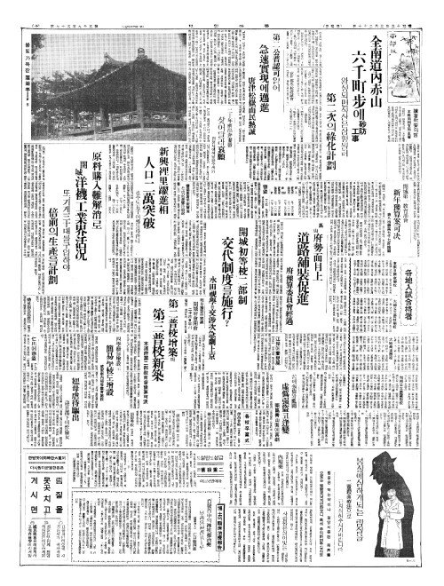 - 全南道內赤山(전남도내적산) 六千町步(륙천정보)에 砂防(사방) 工事(공사) 완성되면적산은잠형될터 第二次(제이차)의綠化計劃(록화계획)