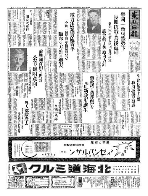 - 擧國一致(거국일치)의體勢下(체세하) 長期抗戰(장기항전)에善後處理(선후처리) 爲先(위선)、厚生省大臣(후생성대신)의專任决定(전임결정) 議會終了後(의회종요후)、政府方針(정부방침)